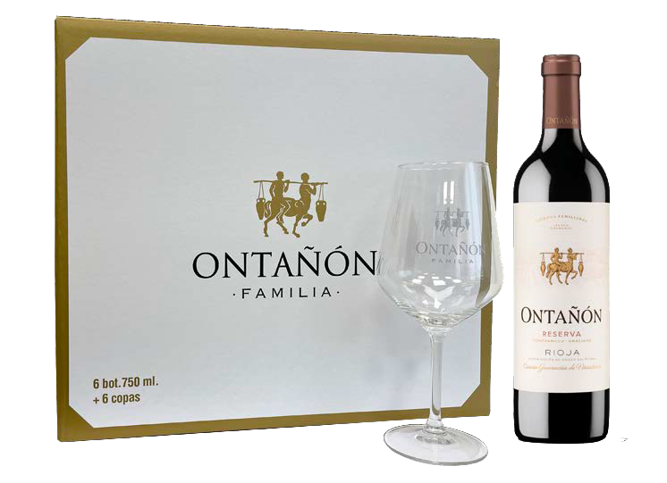 Deze Luxe geschenkbox bevat 6 flessen Ontanon Reserva en 6 Luxe wijnglazen