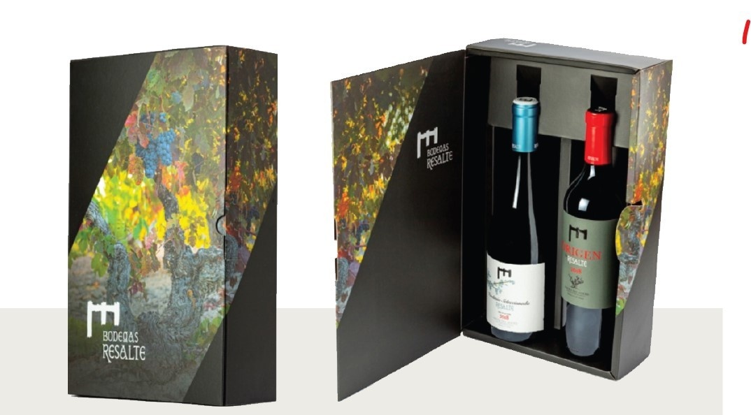 Deze Geschenkbox bevat 1 fles Resalte de Penafiel Seleccionada (rood), 1 fles Resalte de Penafiel Origen en een kurkentrekker.